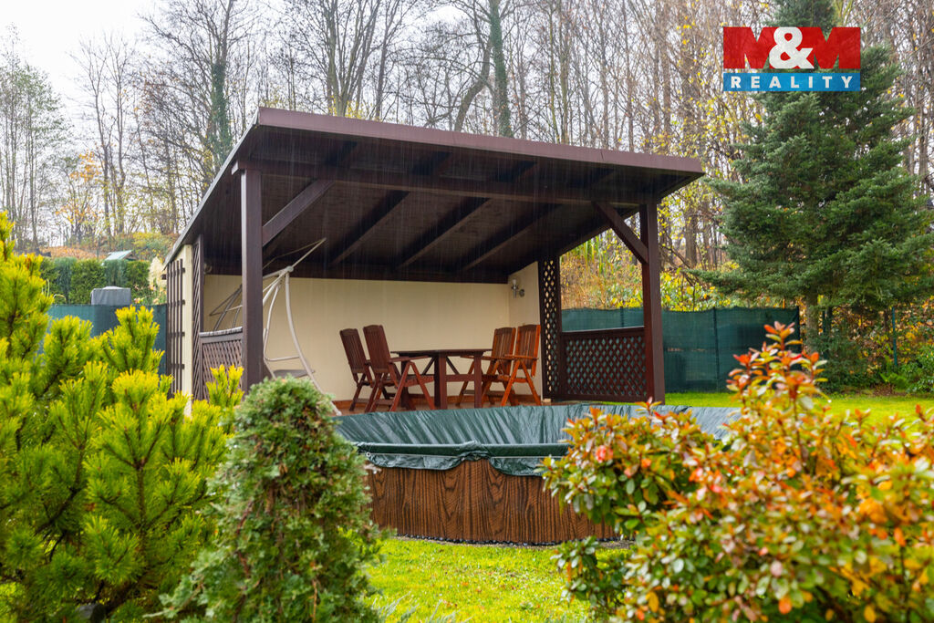 Přízemí domu tvoří vstupní chodba, toaleta, koupelna, kuchyně a obývací pokoj s jídelnou a krbovými kamny, které dodávají prostoru útulnou atmosféru. V prvním patře jsou tři neprůchozí pokoje, toaleta, koupelna a prostorná pracovna, ideální pro práci i odpočinek. Dům disponuje velkou půdou, sklepními prostory, garáží pro osobní automobil a garáží pro dodávku. Na zahradě najdete altánek s posezením a bazén, který zajišťuje relaxaci i zábavu. Nemovitost je napojena na tříkomorovou jímku, vytápěna plynovým kotlem a vybavena zabezpečovacím systémem. Před 11 lety byla instalována fotovoltaika, dům je podřezaný s novými izolacemi. Energetická náročnost třída C. Kombinace prostorného bydlení, bezpečí, komfortu a krásné zahrady činí tuto nemovitost ideální pro rodinné zázemí.
