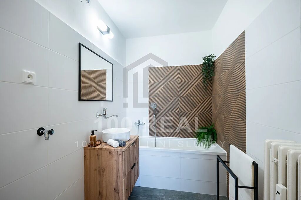 - koupelna s umyvadlem, umyvadlovou skříňkou, zrcadlem a vanou (4,7 m²)