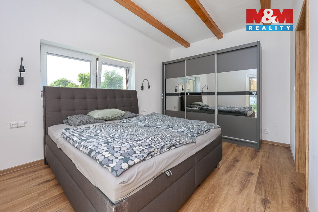 Na prosluněném pozemku o velikosti 1 831 m² stojí dům s 99 m² dokonale promyšlené dispozice a navíc s 30m² terasou, kterou díky možnosti zazimování využijete po celý rok. Dvě koupelny, světlý obývací prostor s kuchyní, dětský pokoj i útulná ložnice vytvářejí harmonické a praktické bydlení. Samostatná garáž a připravené základy pro přírodní jezírko jsou příjemnými bonusy.