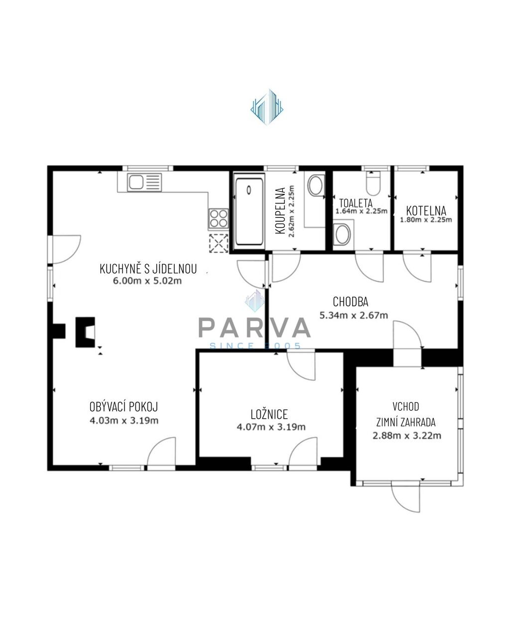 Moderní a vzdušná dispozice 2+kk