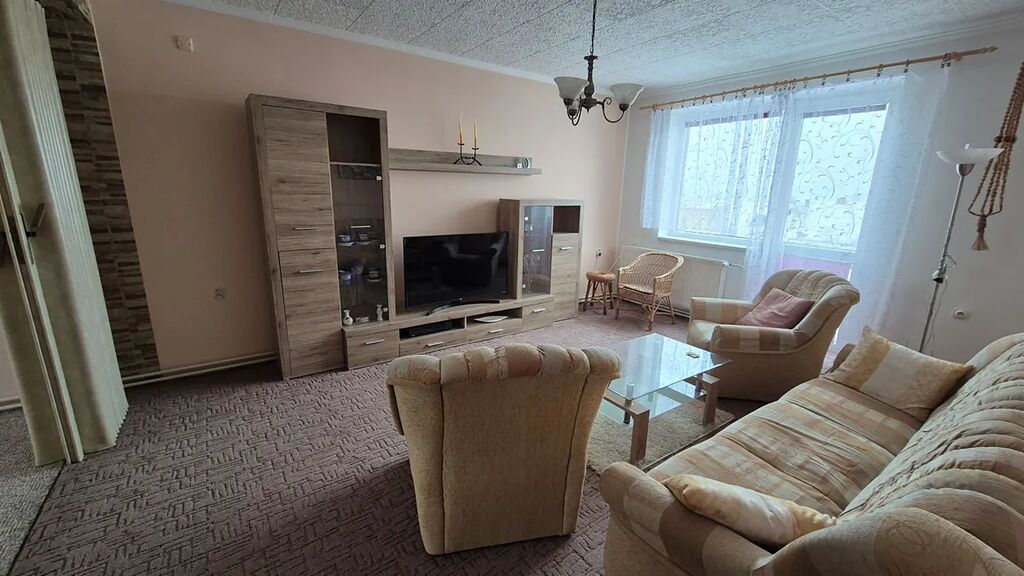 Byt je částečně vybaven a nabízí praktické úložné prostory v podobě sklepu o ploše 13 m². K dispozici je také dva balkóny, které poskytují příjemný prostor pro relaxaci. Umístění bytu v klidné části Turnova zajišťuje pohodlné bydlení s možnostmi dopravy, jako jsou vlak, autobus, MHD, dálnice a silnice.