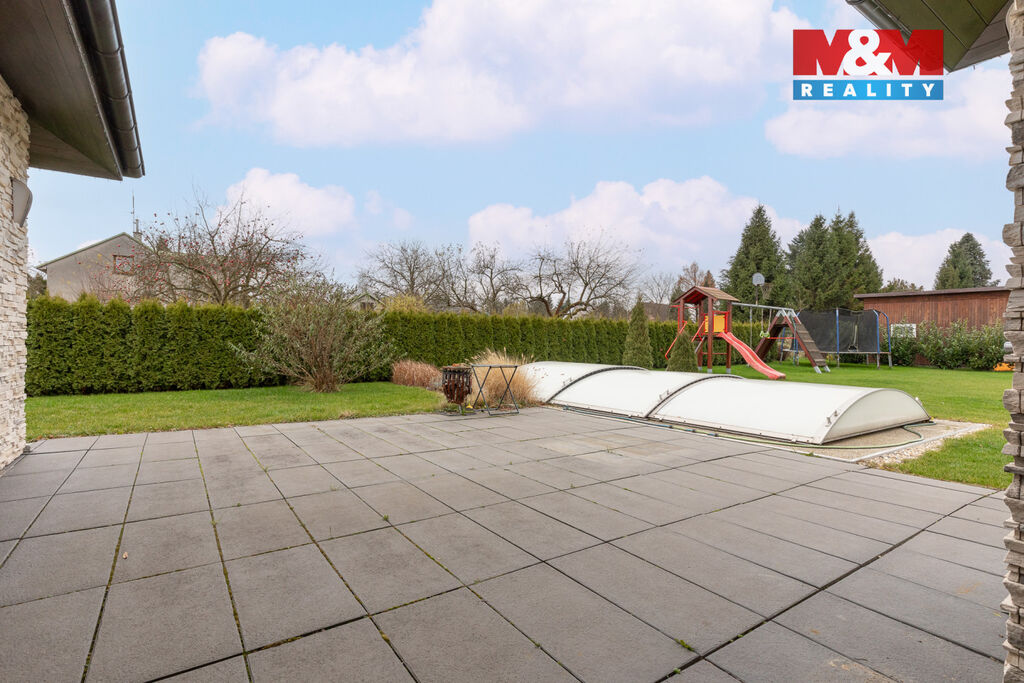 Na všech oknech jsou instalovány venkovní elektrické žaluzie, které zajišťují soukromí, tepelnou regulaci i bezpečnost. Soukromá, udržovaná zahrada nabízí: