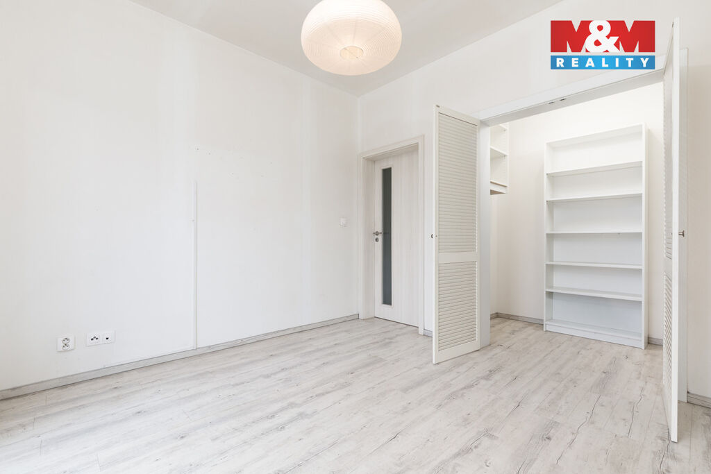 Ložnice má vstup na zahradu přes francouzské okno a je v ní umístěna i šatna s dostatkem úložného prostoru.