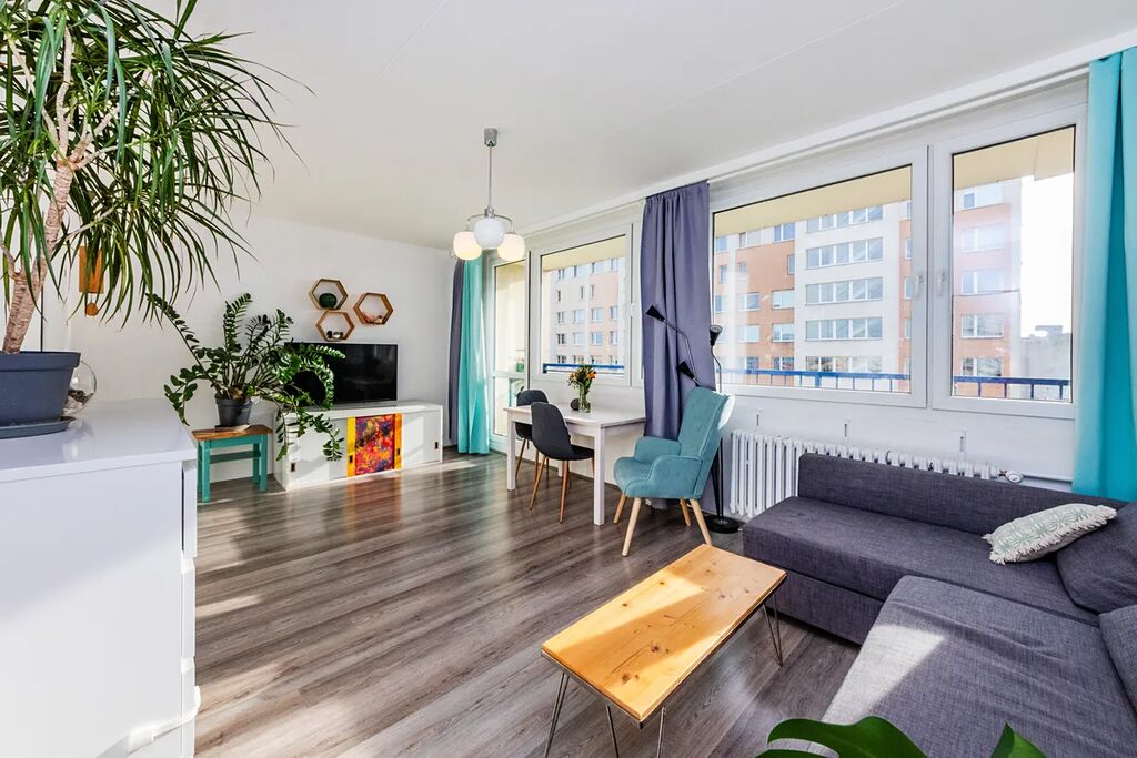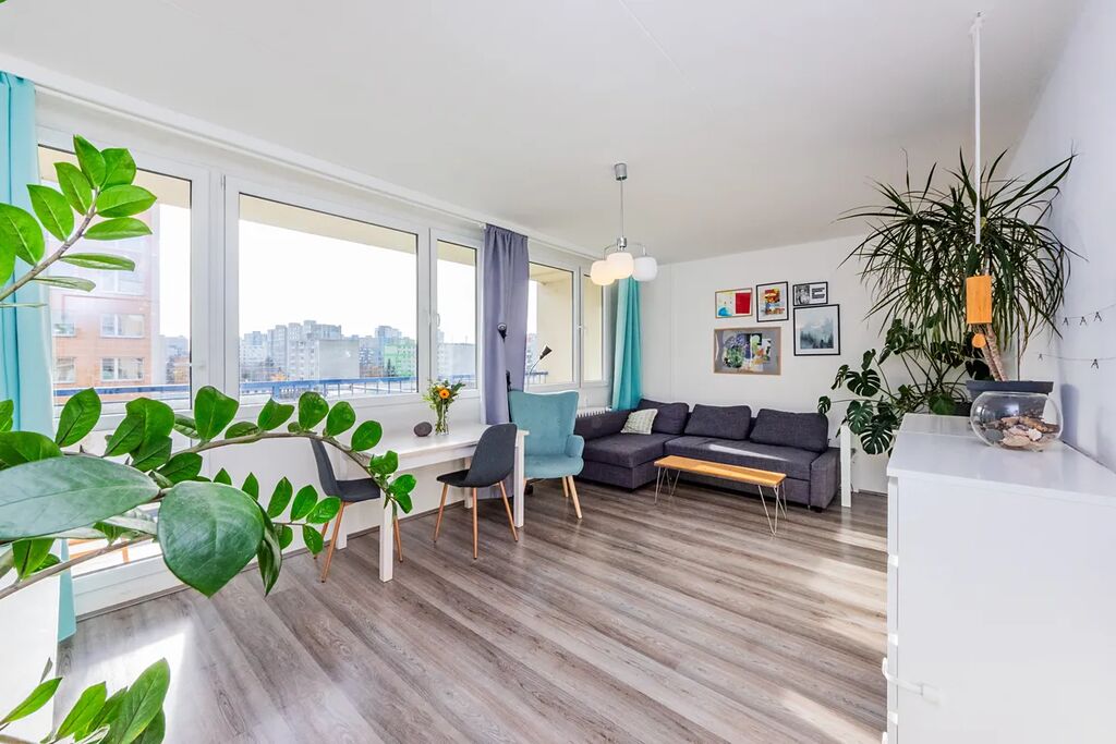 Byt 3+1 s výhledem na Prahu a ideální orientací, v docházkové vzdálenosti na metro Opatov i Háje a přímým autobusovým spojením na Budějovickou nebo Smíchovské nádraží.