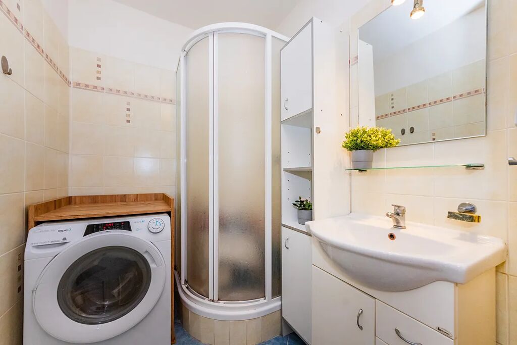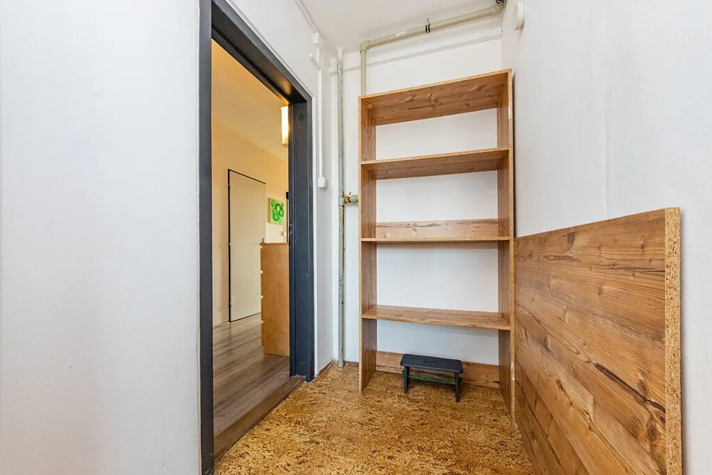 Obývací pokoj je orientovaný na jih a je z něj přímý vstup na balkon, dvě ložnice s okny na sever, kuchyň je orientovaná na východ. S bytem si kupujete praktickou předsíň před vstupem do bytu, kam pohodlně umístíte kočárek nebo kola, k bytu náleží sklep. Měsíční náklady pro 3 osoby jsou 5 486 Kč + elektřina (700 Kč).