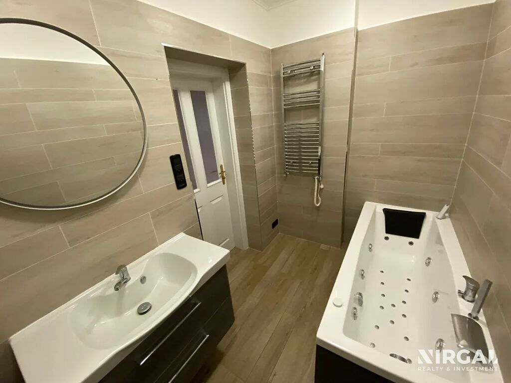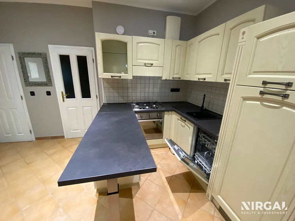 Kuchyň je plně vybavena spotřebiči – myčka nádobí, trouba, varná deska, digestoř, lednice. V koupelně se nachází prostorná vířivá vana (jacuzzi) s hydromasážním systémem. Toaleta je samostatně. V bytě je dostatek úložných prostor.