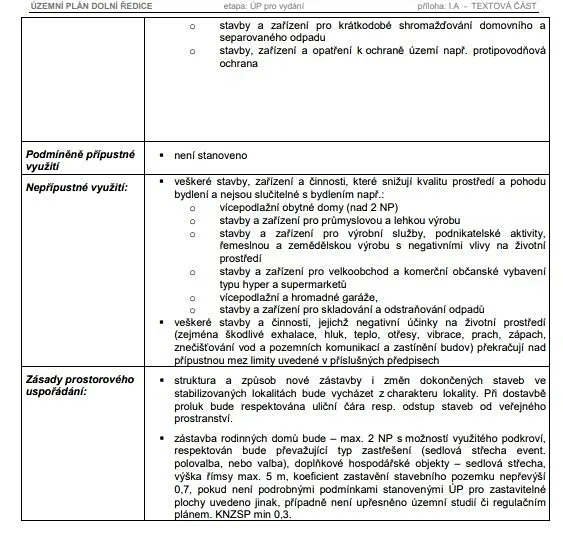 V lokalitě již proběhla demolice původních zemědělských objektů a projekt je nyní ve fázi parcelace a kompletního zasíťování. Ke každému pozemku budou přivedeny veškeré inženýrské sítě: elektřina, vodovod, splašková tlaková kanalizace i plynovod. Pohodlný příjezd je zajištěn po existující obecní asfaltové komunikaci. Územní plán počítá s výstavbou rodinných domů venkovského charakteru. Regulativy umožňují si postavit dům o dvou nadzemních podlažích s využitelným podkrovím. Střecha může být sedlová, s valbou nebo polovalbou. Koeficient zastavění max. 0,7.