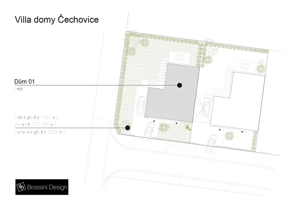 Projekt „Villa domy Čechovice“ je určen pro i zájemce vyžadující individuální přístup, pro ty kdo hledají výjimečné bydlení v jedinečné lokalitě se skvělým napojením na městský život i přírodu. Za projektem stojí tým Brossini, architektonická a stavební společnost z Prostějova, která se od roku 2009 specializuje na výstavbu domů s důrazem na detail a moderní architekturu.