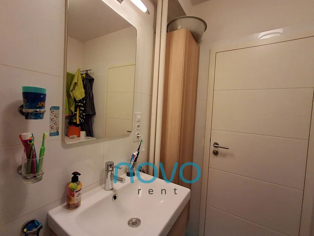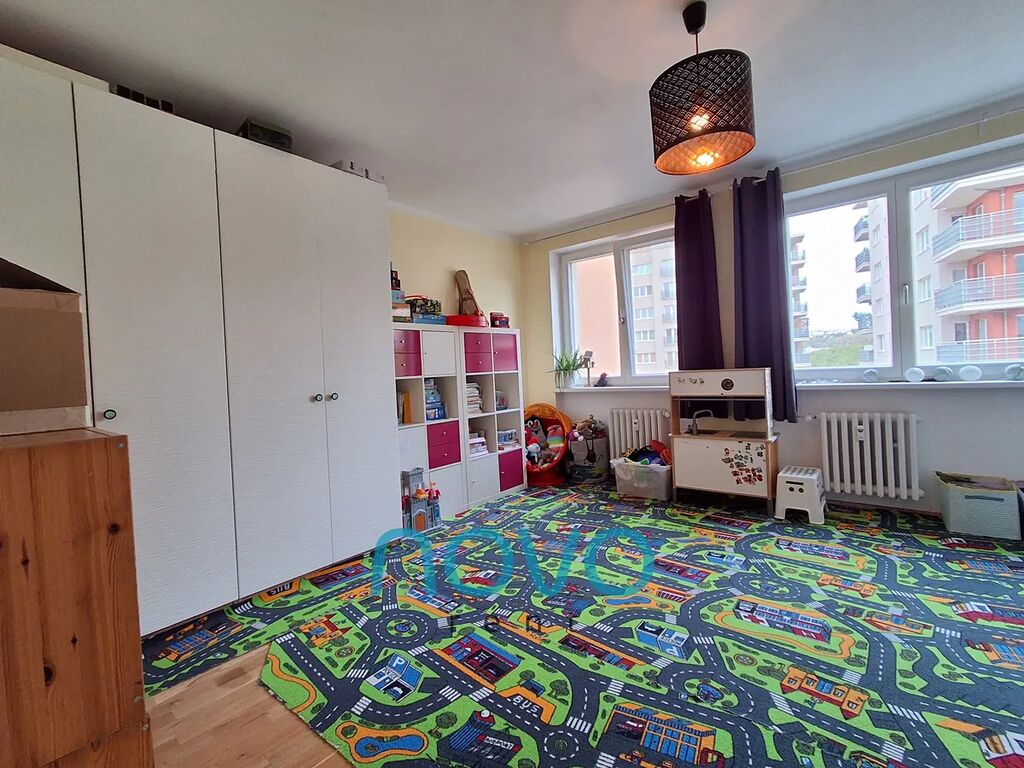 Po vstupu do bytu máte k dispozici předsíň vedoucí do komory s oknem vybavené velkou skříní. Dále pak se chodbou dostanete do obývacího pokoje, ze kterého můžete vyjít na lodžii, která je dlouhá přes celý byt. Naproti obývacímu pokoji je další místnost nyní využívaná jako dětský pokoj. Dále se chodbou můžete jít do další z prostorných místností tohoto bytu a to ložnice nebo můžete jít do kuchyně kam se pohodlně vejde jídelní stůl pro celou rodinu. Byt má ještě další menší komoru a 2x WC.