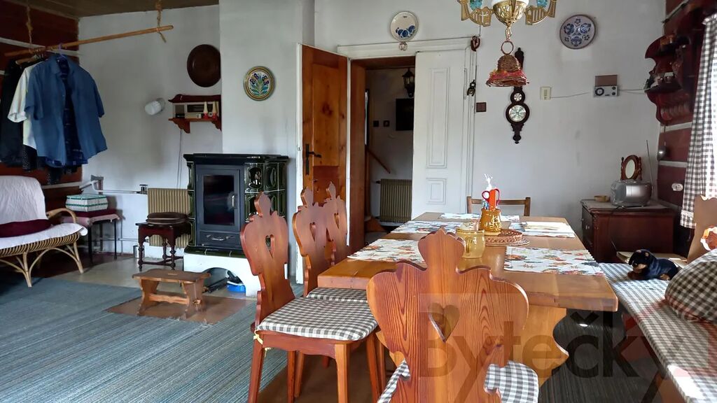 Dispozice: zádveří, dílna, chodba, kuchyň s komorou, obytný pokoj/setnice s kachlovými kamny, koupelna s vanou, samostatná toaleta, velká veranda; schody do podkroví: 2x ložnice, půdička; v suterénu se nachází sklípek a garáž s přímým vstupem do chalupy. Chalupa je v dobrém stavebně-technickém stavu. Na chalupu svítí sluníčko od rána až do večera. V Rokytnici nad Jizerou se nachází několik oblíbených sjezdových areálů. např. v docházkové vzdálenosti Skiareál Studenov, Skiareál Horní domky do 10 min. bezplatným Skibusem, běžecké lyžařské tratě, turistické a cyklistické trasy. Výhodná koupě - chalupa je vhodná na celoroční bydlení / rekreaci, Jedinečná příležitost! Volejte, pište - pracuji i o víkendu.