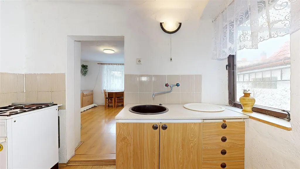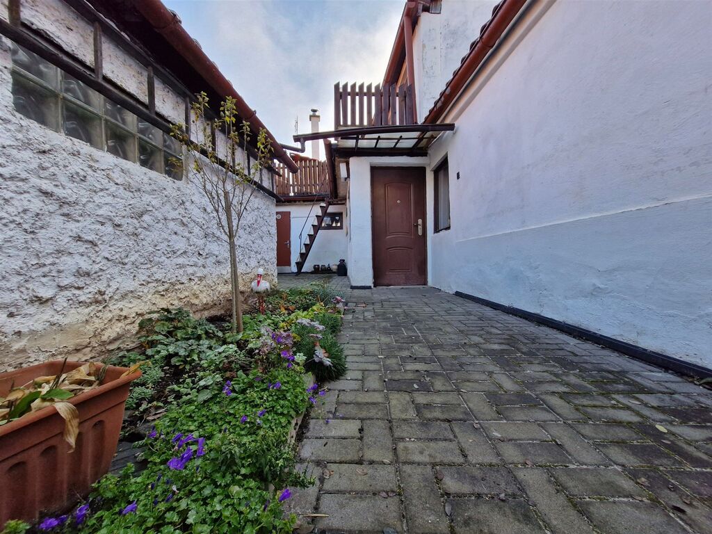 Domek je ze smíšeného zdiva a sloužil k trvalému bydlení. Je napojený na veškeré dostupné IS elektřinu, vodovod a kanalizaci, plyn není. V přízemí se nachází 2 pokoje, kuchyňka, předsíň a malá koupelna se sprchovým koutem, v patře, přístupném po venkovních schodech, je pak další, letní pokoj, otevřená terasa a půda. Ze dlážděného dvora vejdete do venkovní komory a kůlny/dílny. Ulička, v níž se domek nachází, je přístupná autem do vzdálenosti cca 10 m od domku, pak už jen pěšky. Zaparkujete však velmi blízko v příjezdové ulici cca 80 m od domku.