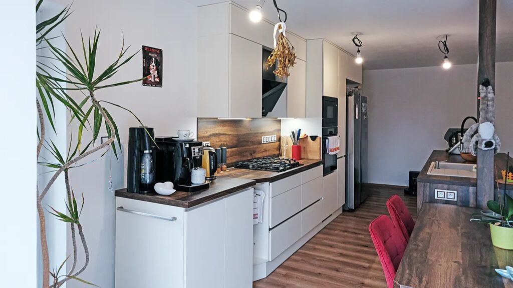- chodba, koupelna - 2 x umyvadlo, sprchový kout, vana, samostatné WC, ložnice s vestavěnou šatnou vstupem na terasu, šatna, dětský pokoj, kuchyně s kuchyňským sezením a obývacím pokojem se vstupem na terasu (manuál.+ el. ovládání markýzy na terase), vstup na půdu