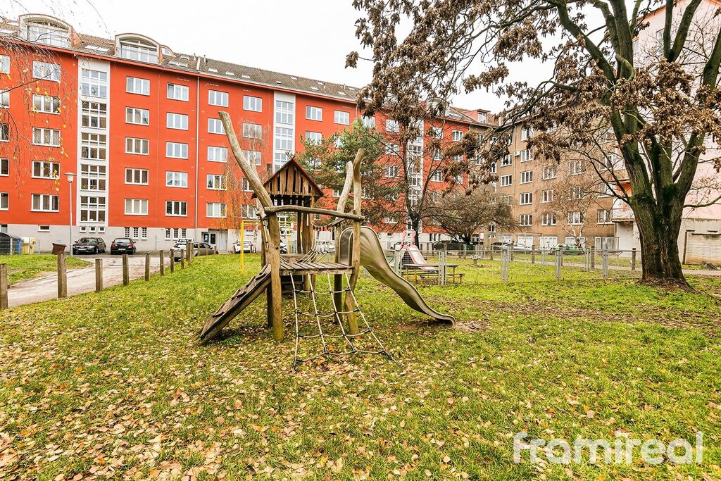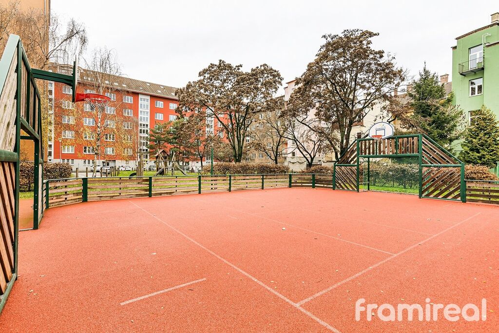 K dispozici je uzavřený vnitroblok s dětským hřištěm a možností parkování zdarma. V okolí jsou modré zóny, kde je dostatek parkovacích míst.