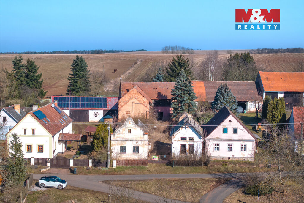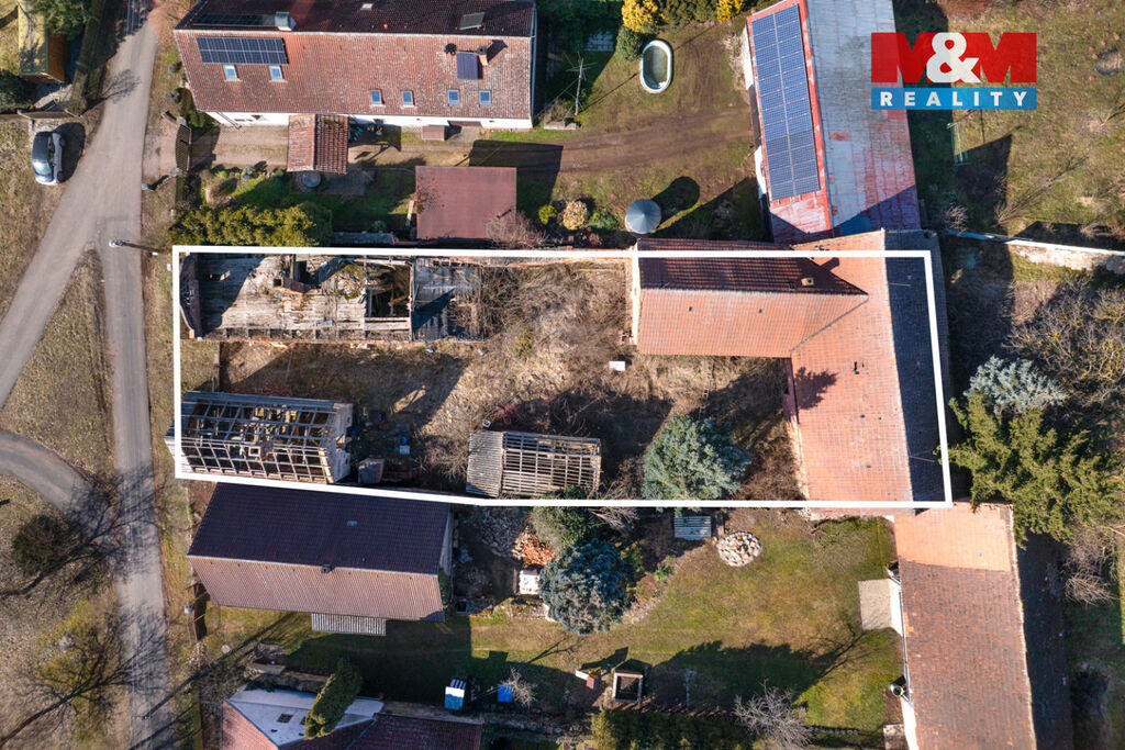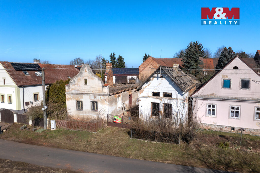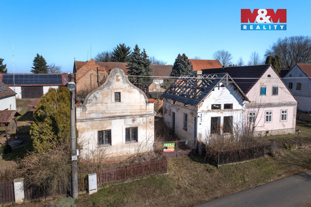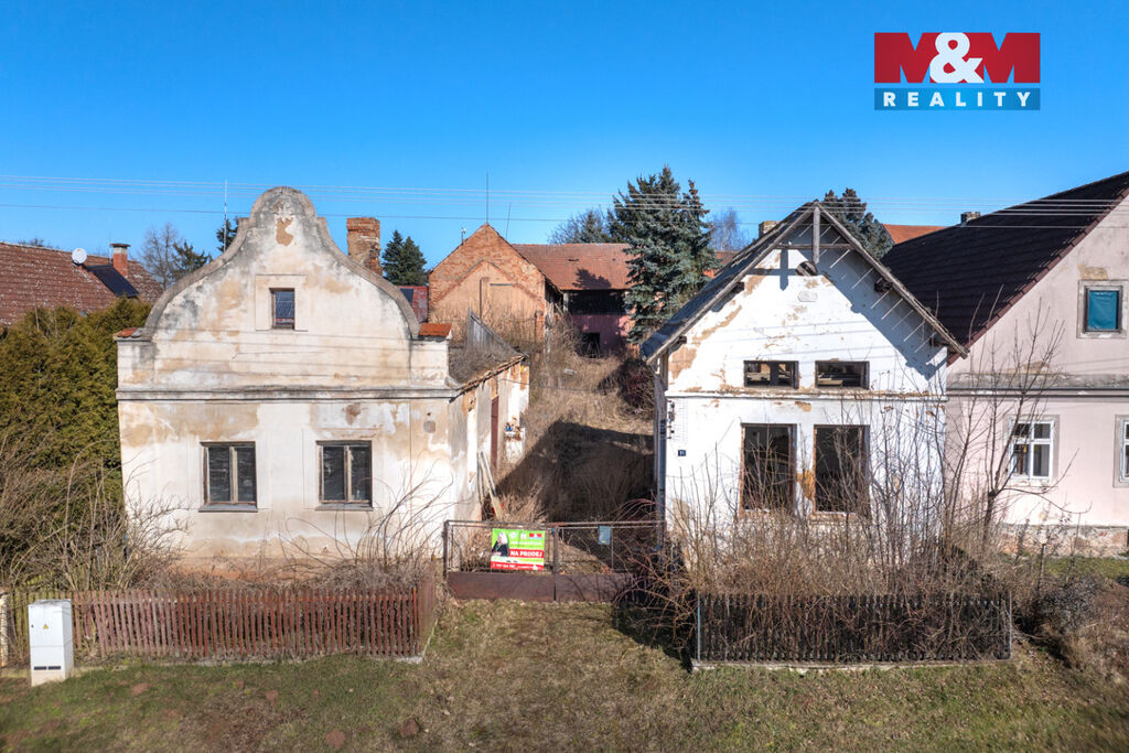 K prodeji je zde pozemek o velikosti 856 m2, na kterém stojí dva rodinné domy s dvěma čísly popisnými a velká stodola. Oba domy jsou ve špatném stavu a jsou tak určeny buď k celkové rekonstrukci anebo přímo k demolici. Demoliční výměry na oba domy a projektová dokumentace na nový dům jsou k dispozici.