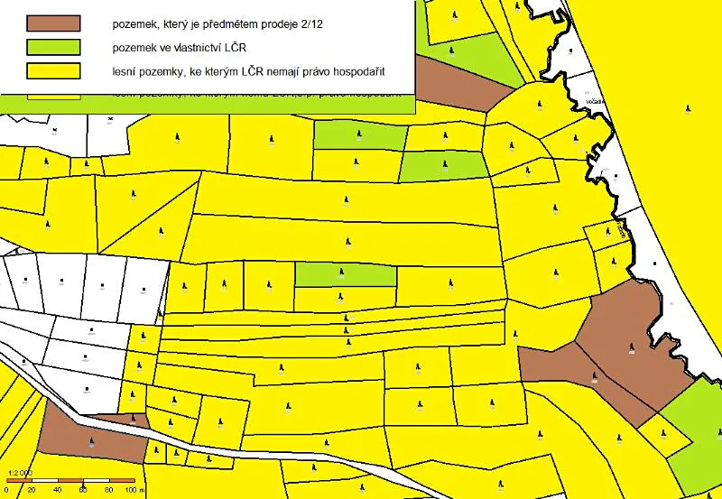 Jedná se o prodej spoluvlastnického podílu o velikosti Id. 2/12 k celku celkem 7 lesních pozemků (parc. č. 351, 385, 707, 1488, 1500, 1502, 1557). Pozemky parc. č. 351, 707 a 1557 jsou nezalesněné, na pozemcích parc. č. 385, 1488 a 1500 rostou převážně mladé listnaté stromy a na pozemku parc. č. 1502 se nachází vzrostlý 40 letý smrkový porost.