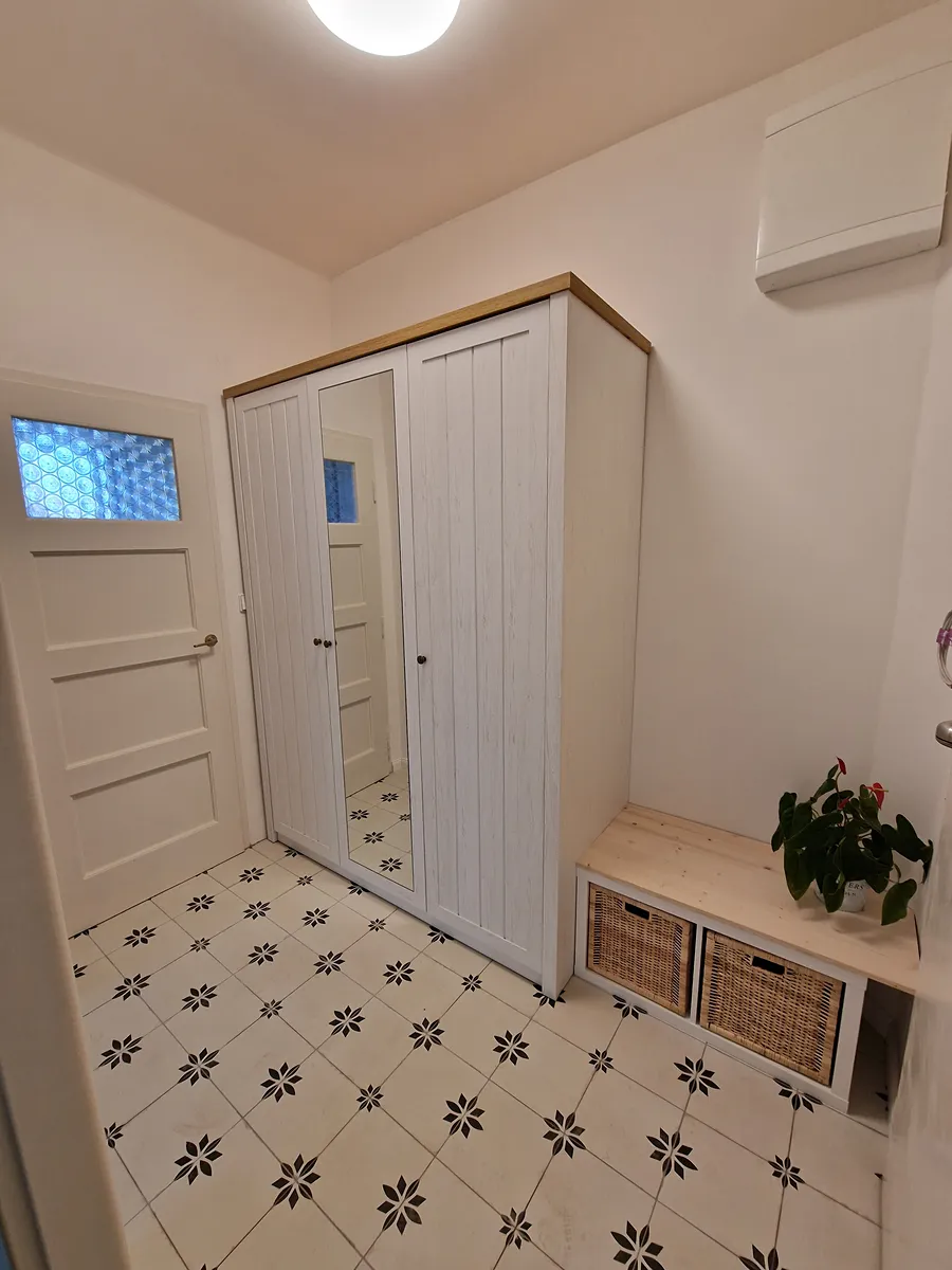Byt má zděnou koupelnu se sprchovým koutem a je dále vybaven pěknou kuchyňskou linkou s el.troubou, varnou deskou, digestoří, lednicí, umyvadlovou skříňkou v koupelně, skříní na chodbě a svítidly ve všech místnostech. Provedena izolace stropů. Ihned dostupné.