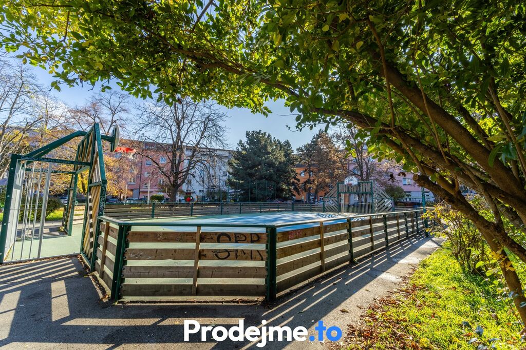 Součástí bytu je obývací pokoj, kuchyně, dětský pokoj, ložnice se vstupem na lodžii, koupelna s vanou a samostatná toaleta. V chodbě se nachází dvě vestavěné skříně, které poskytují praktický úložný prostor. Kuchyňská linka je v zachovalém stavu, koupelna i toaleta jsou původní a vhodné k modernizaci. Další úložné prostory nabízí sklepní kóje, k dispozici je i společná kolárna.