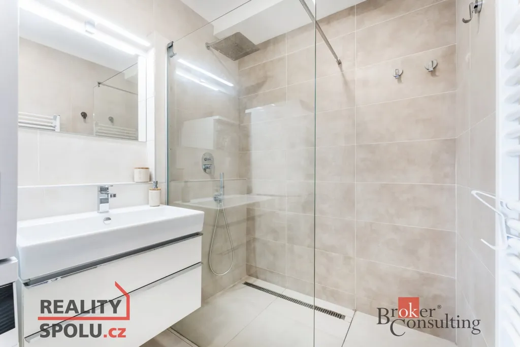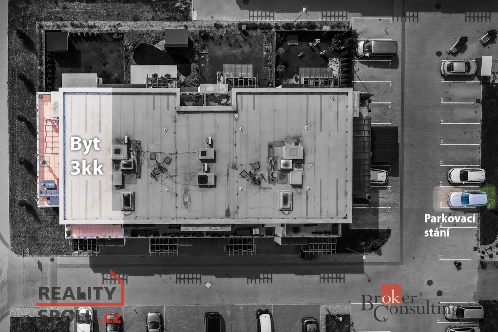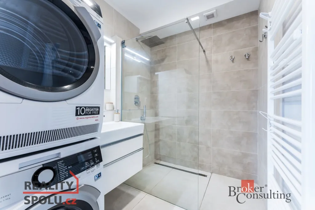 3+kk | 78 m² obytné plochy, 2 terasy, kde první terasa má 14 m² a druhá terasa má 30 m² – vhodná pro relaxaci, posezení či grilování. Dále je k bytu sklep 2 m² – ideální pro uskladnění kol či sezónních věcí a vlastní parkovací stání přímo u domu. Velká francouzská okna, která zajišťují dostatek světla, moderní kuchyňská linka na míru se zabudovanými spotřebiči, koupelna se sprchovým koutem a samostatné WC.