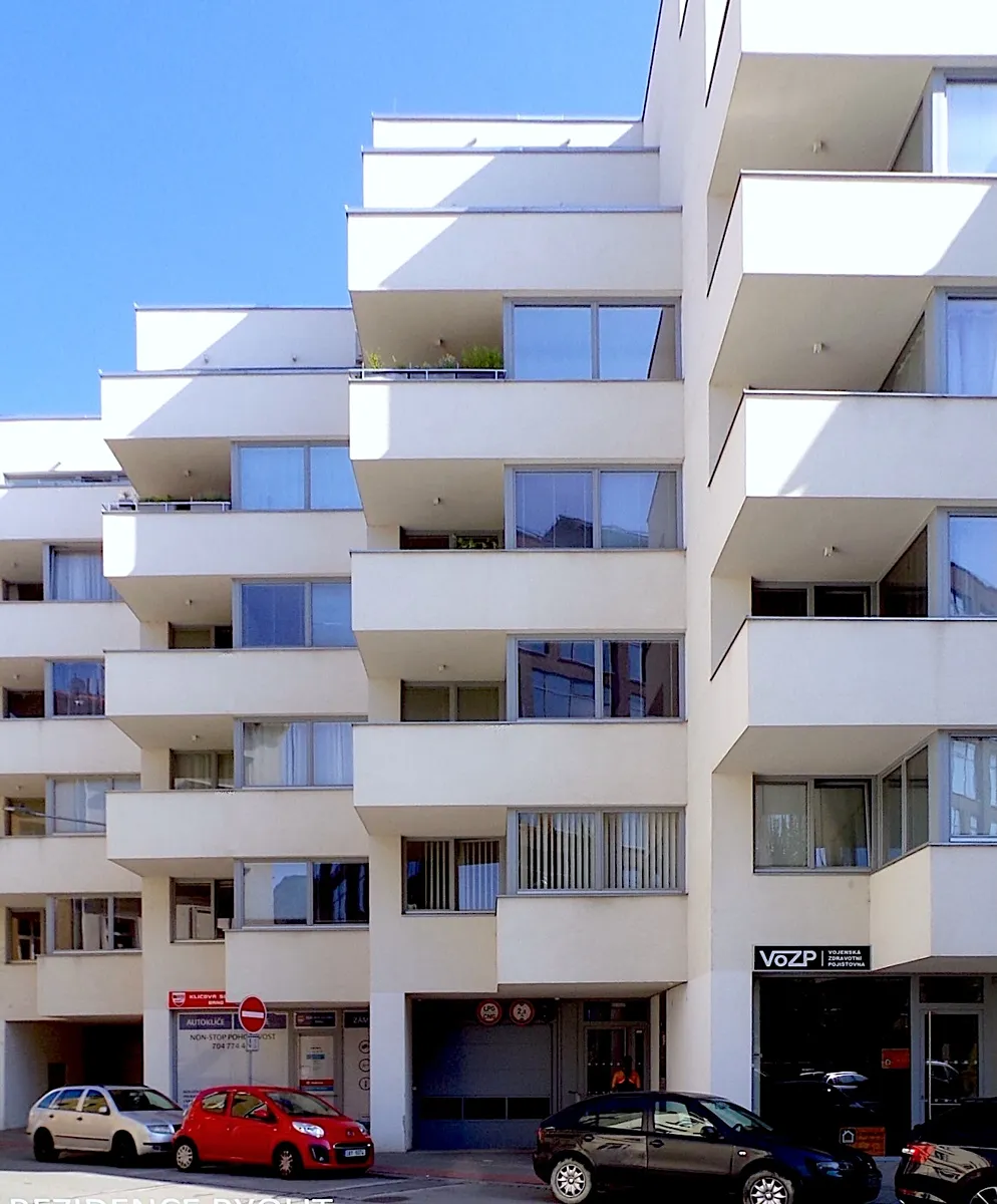 Byt se nachází ve 4.NP s výtahem a je orientován do klidného dvorního traktu.