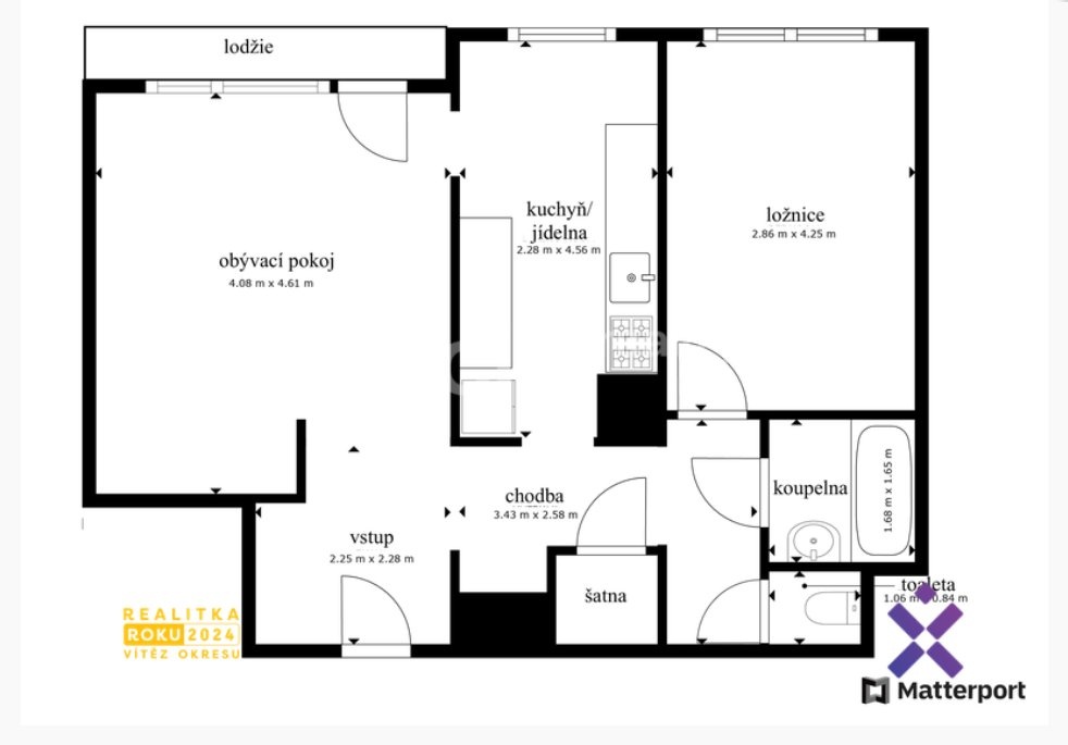 Dispozice bytu zahrnuje samostatnou kuchyni s praktickým jídelním koutem, ideálním pro pohodové každodenní stolování. Na kuchyni navazuje obývací pokoj, který je přístupný i z chodby, což přispívá k pocitu otevřenosti a vzdušnosti. Z obývacího pokoje se vychází na balkon, kde si můžete užít klidné chvíle na slunci nebo s výhledem do okolí. Díky šatním skříním v ložnici a na chodbě nabízí byt dostatek úložného prostoru