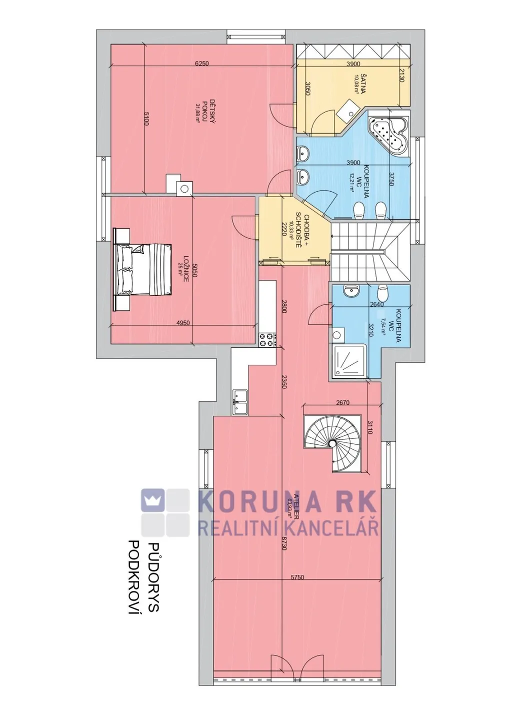 Jedná se o přízemní rodinný dům s provedenou vestavbou podkroví na nádherném vyvýšeném místě s částečným výhledem na Třeboňskou pánev s bytem 4+kk a ateliérem s vlastním sociálním zázemím a kuchyní, který je též samostatně přístupný a je možné jej užívat odděleně.