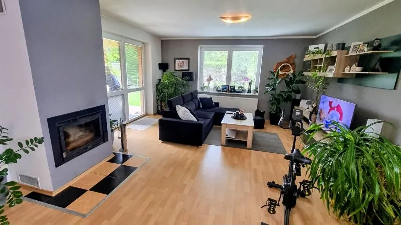 686 Prodej krátkodobě užívaného prostorného rodinného domu 4+1 s prostornou stodolou a zahradou v klidné lokalitě městyse Stařeč kolaudovaného v roce 2009 vzdáleného cca 2 km od Třebíče. V přízemí je prostorné zádveří ( 6,2 m2 ), hala ( 9,1 m2 ) v současnosti propojená s kuchyní ( 12,1 m2 ) a s obývacím pokojem ( 35,6 m2 ), dále pak tři ložnice ( 11,5 m2, 8,2 m2 a 13,8 m2 ), spíž ( 1,7 m2 ), WC ( 2,6 m2 ), koupelna s WC ( 6,5 m2 ). Na dům navazuje z větší části zastřešená terasa ( 33 m2 ), z jedné poloviny podsklepená velká stodola ( 100 m2 ), zahrada ( 1.039 m2 ) a parkovací plocha. V podkroví je prostorná půda. Dům je vybaven fotovoltaickými články s baterií na 9,96 kW a postaven je z bloků POROTHERM o síle 44 cm. Sítě: elektřina, obecní vodovod a kanalizace, plyn je v dosahu cca 35 m. Topení je řešeno převážně krbovou vložkou s možností vytápění elektrokotlem s radiátory, ohřev vody elektrickým boilerem. Aktuální roční spotřeba elektřiny v domě včetně elektrického topení a ohřevu vody je 34.000,- Kč. Zastavěná plocha 160 m2, užitná plocha cca 140 m2, stodola 100 m2. Pozemky celkem o výměře 1.299 m2. PENB D. Volný IHNED.
