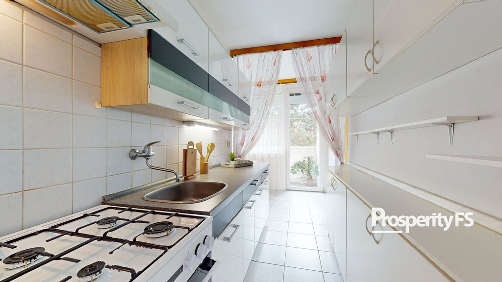 Bytová jednotka se nachází v pátém nadzemním podlaží panelového domu s výtahem, o užitné ploše 41m², je vybaven plastovými okny, kuchyňskou linkou včetně kombinovaného sporáku (plynová varná deska a elektrická trouba), dále koupelna s rohovou vanou a toaletou. Byt má dálkové vytápění i ohřev teplé vody, nachází se několik minut pěší chůze od mateřské, základní školy. Elektřina s plynem bude přihlášená na nájemníka u dodavatele, voda a teplo je rozúčtované jednou ročně podle bytových měřidel. K dispozici je přípojka na TV a internet. S bytem je spjato užívání sklepní kóje.