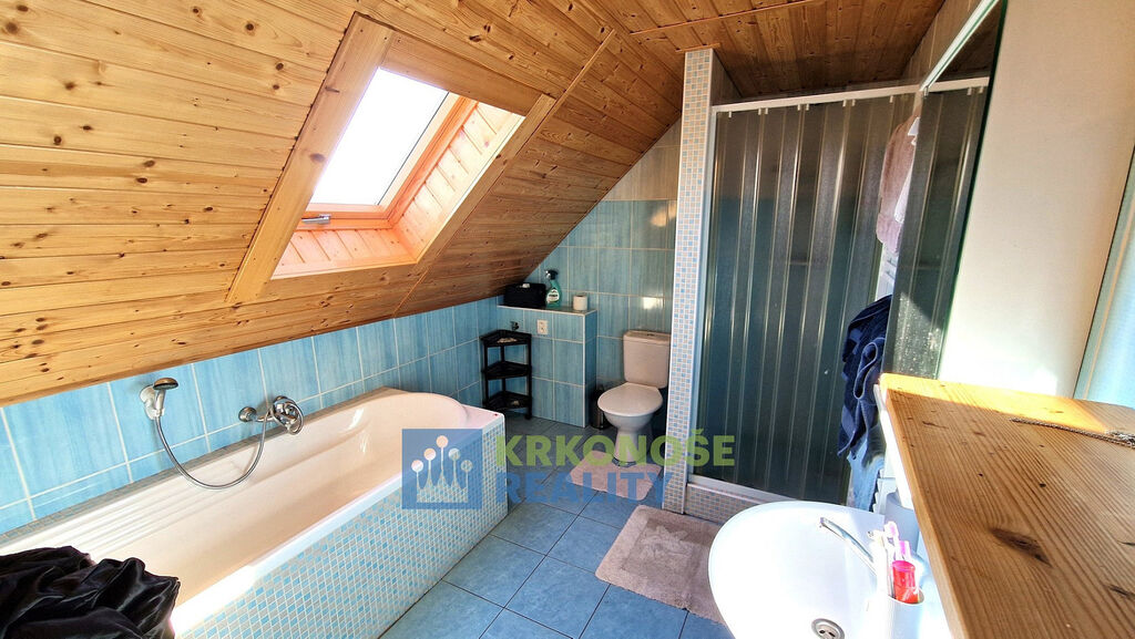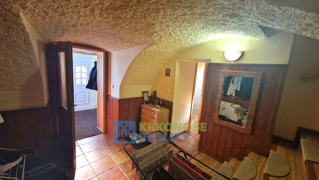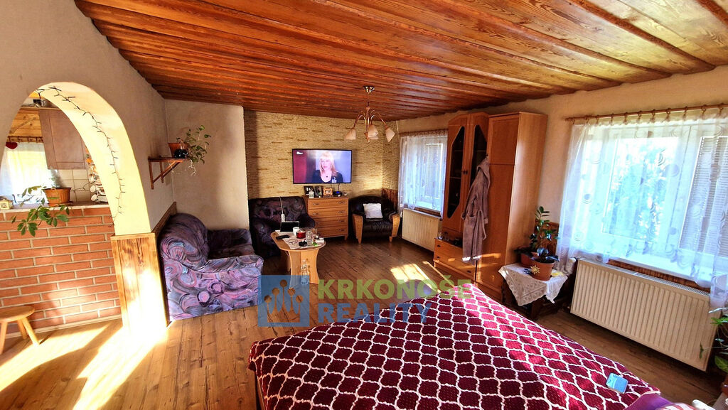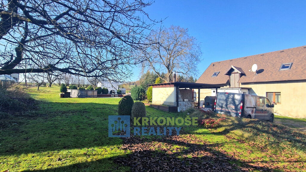 Nabízíme Prodej rodinného domu s hezkou udržovanou okrasnou zahradou o výměře cca 1.000 m² v obci Velké Svatoňovice - Markoušovice vzdálené 8 km od Trutnova. Objekt, postavený v roce 1920 a kompletně zrekonstruovaný v roce 2015, je zděný s kamennými základy, jednopodlažní, zčásti podsklepený a s částečně využitým obytným podkrovním prostorem. Dispozičně je dům řešen jako 6+1 s podlahovou plochou 165 m². Podlahová plocha včetně příslušenství činí 195 m². Dům je napojen na veřejný vodovodní řád a elektrorozvodnou veřejnou síť, odpady svedeny do septiku, přípojka plynu na hranici pozemku. Ústřední vytápění kotlem na dřevo, případně elektrokotlem. K objektu dále přísluší udržovaná zahrada s převážně okrasnými dřevinami, skleníkem, nadzemním bazénem, studnou a zastřešenou pergolou s krbem a posezením. Okolo domu je udržovaná zahrada s převážně okrasnými dřevinami. Slunné místo s hezkým výhledem do krajiny. Možnost využití k trvalému bydlení nebo rekreaci – v okolí krásná příroda Jestřebích Hor.