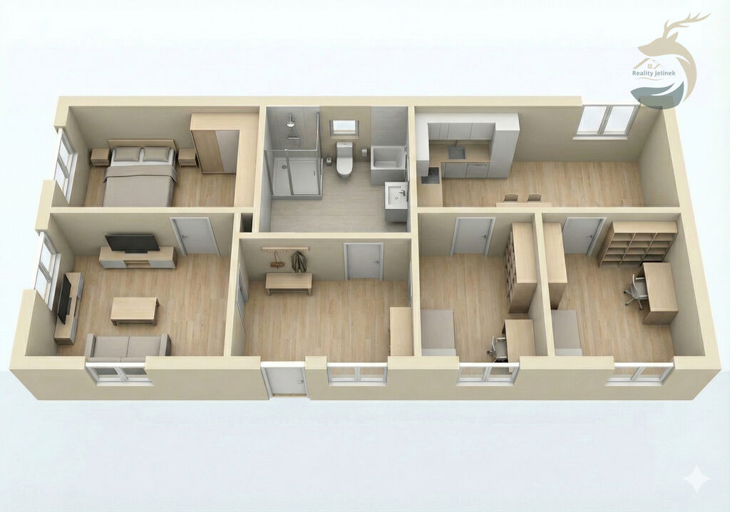 V srdci obce Dolní Lukavice, na adrese č. p. 11, stojí rodinný dům, který v sobě spojuje jistotu tradičního venkovského bydlení s dostupností města. Pozemek o velikosti 712 m² obklopuje stavbu, která nabízí celkovou podlahovou plochu přibližně 128 m², přičemž v přízemí poskytuje prostornou dispozici 4+1 a v podkroví další útulný pokoj o velikosti 23 m². Kdo hledá možnost růstu, ocení připravený půdní prostor, který umožňuje vybudovat dalších zhruba 60 m² obytné plochy.