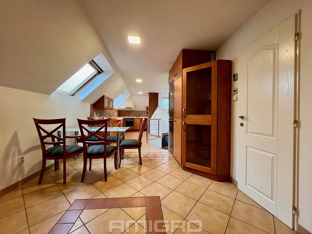Dům byl postaven v roce 2000. Byt se nachází ve 2. patře. Pokoje nejsou průchozí. Obývací pokoj s kuchyní a jídelnou je atypický s vnitřním schodištěm (nevhodné pro menší děti). Z obývacího pokoje je vstup na prostornou terasu.