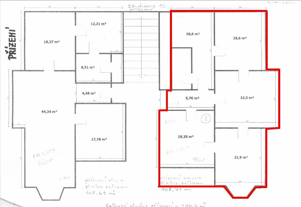4 prostorné místnosti (možnost stavebních úprav či propojení podle potřeb nájemce),