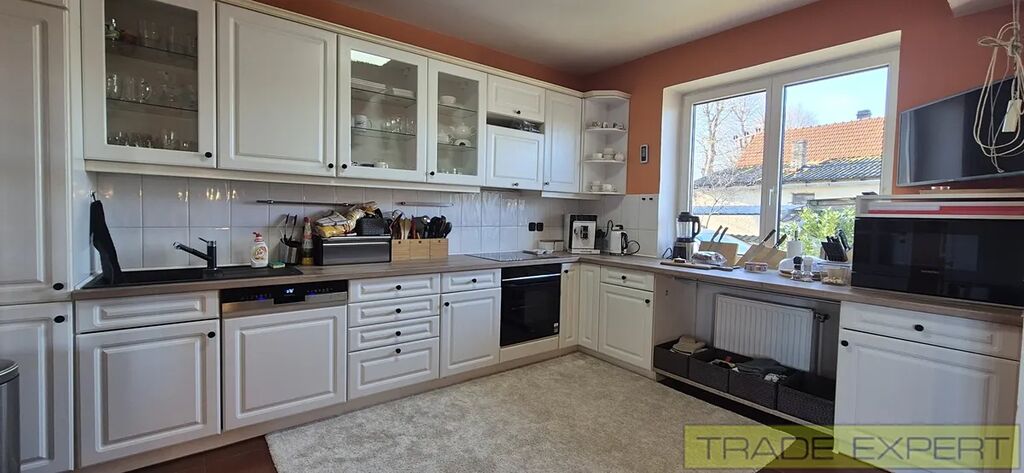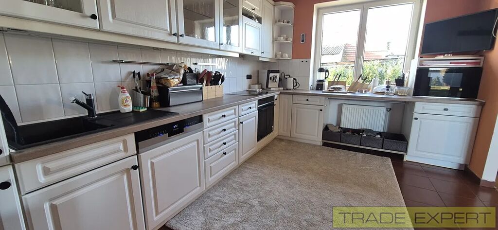 Prodej RD 5+kk, s užitnou plochou 236 m2, Korno, okr. Beroun. Prostorný rodinný dům o výměře 236 m2, dispozičně 5+kk se nachází na okraji Korno v krásném a klidném místě. Plocha pozemku je 1063 m2 Dispozice: vstup do zádveří a následně do haly. Z haly vstup do tří pokojů, kuchyně a prostorného obývacího pokoje s krbovými kamny a vstupem na terasu. . V podkroví se nachází další samostatná obytná místnost a dalších 200 m2 půdy je možné adaptovat k bydlení. Jedna garáž (30m2) je integrovaná v domě, druhá samostatná garáž 15 m2 se nachází na pozemku vedle domu, Dům byl kolaudován v roce 1994. Dům je zateplený, má vlastní studnu, a je připojen na kanalizaci. Vytápění: elektrokotel + krbová kamna. Kuchyň je osazena spotřebiči Siemens. Vzrostlá a udržovaná zahrada, ohraničení pozemku zdí, bazén se slanou vodou 7x3x1.3 metru. na terase je nově umístěná pergola. Parkovací místa pro 5 aut, brána na DO, předokenní rolety. Podlahy: předsíň, koupelna a hala - keramické dlažby, 3 pokoje lepený vinyl, obyvací pokoj lakované parkety. Možno přenechat včetně nábytku. V okolí domu je krásná příroda, 2 km od Karlštejna, 10 km od Berouna na nájezdu na D5. 25 min jízdy autem od Prahy. Dům je možné financovat hypotečním úvěrem.