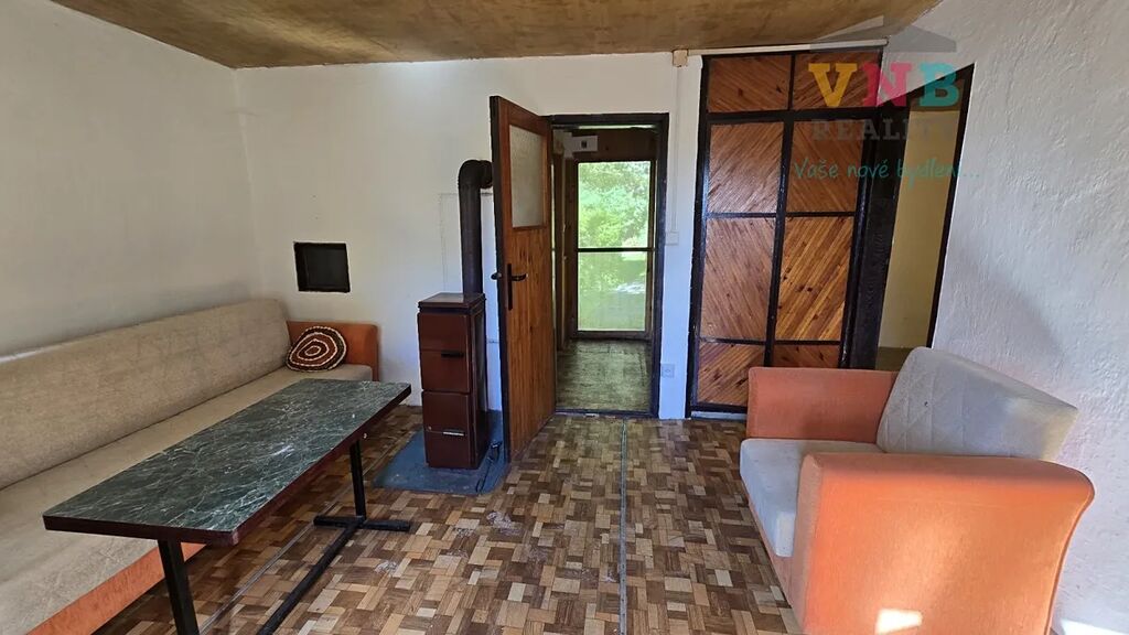 Chata je vyklizená, připravená pro nové majitele.
