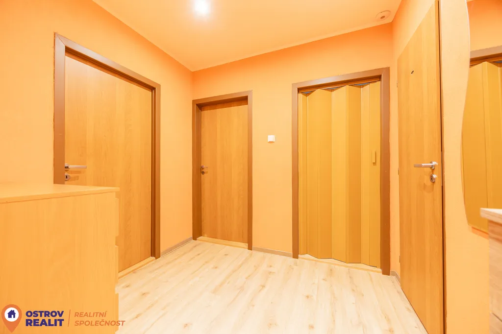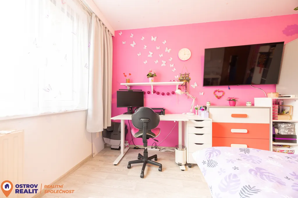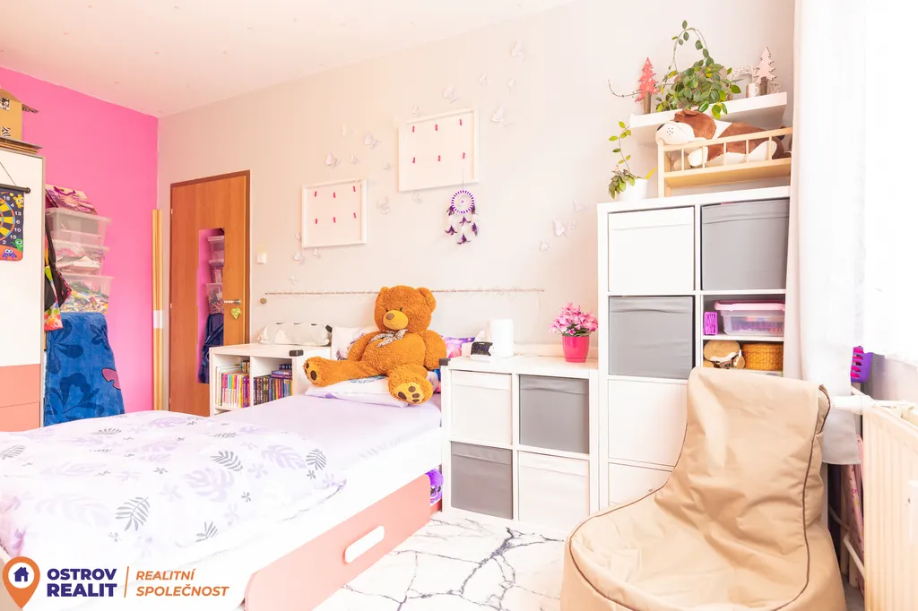 Dispozice bytu je velmi dobře řešená – nabízí dostatek úložného prostoru v komoře a samostatné, neprůchozí, dobře využitelné pokoje. Z ložnice je vstup do zasklené lodžie, která poskytuje příjemné místo k posezení i za horšího počasí.