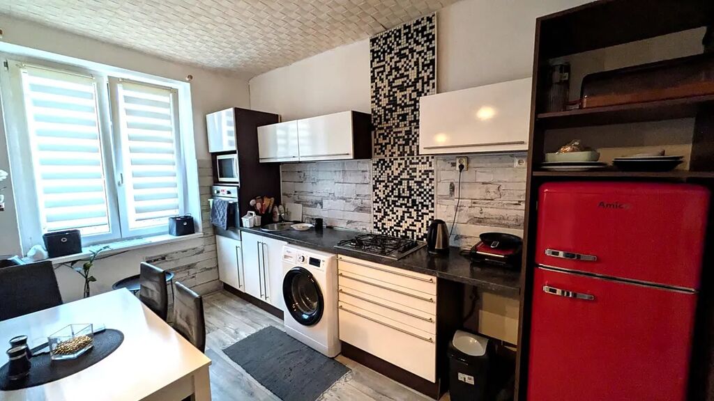 V kuchyni je kuchyňská linka s plynovým sporákem. V koupelně je vana a umyvadlová skříňka, WC je odděleno.
