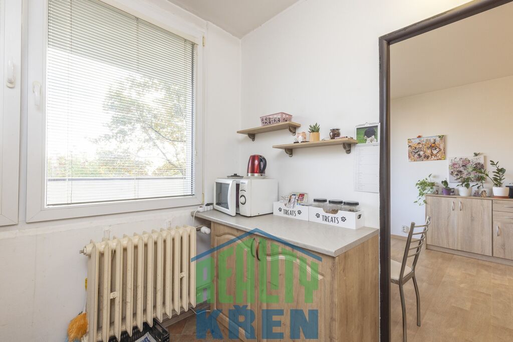 Anuita splacena, převod do osobního vlastnictví zatím není možný. Vstupní předsíň, obývací pokoj se vstupem na lodžii, kuchyně, 2x ložnice, koupelna s vanou, samostatné WC. K bytu náleží sklepní kóje 2,2 m2 a za nízký poplatek lze pronajmout komoru na patře.