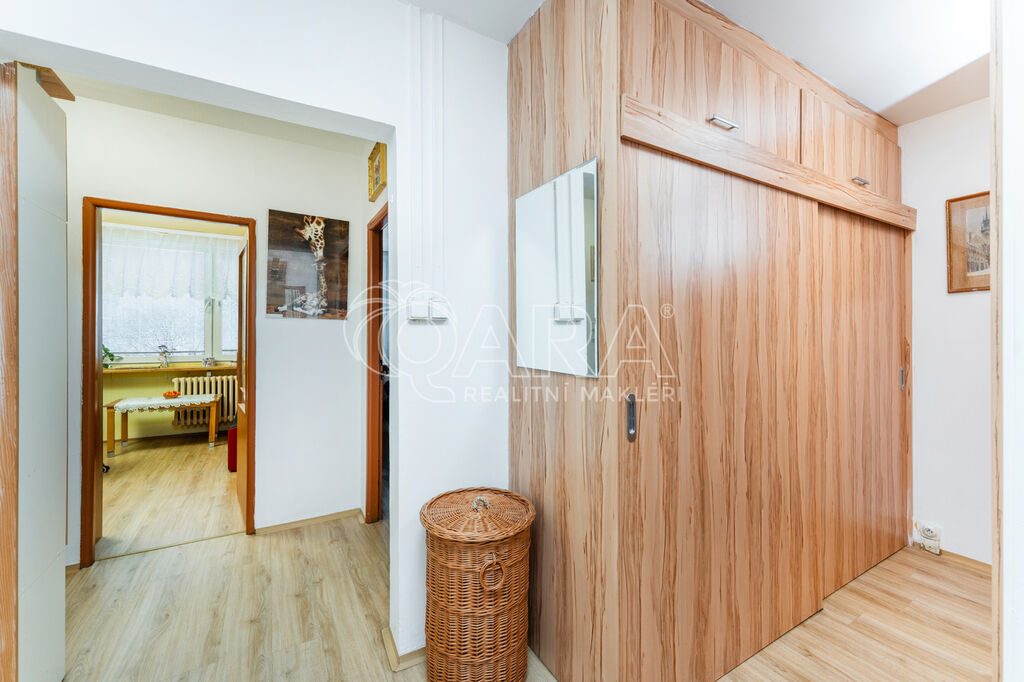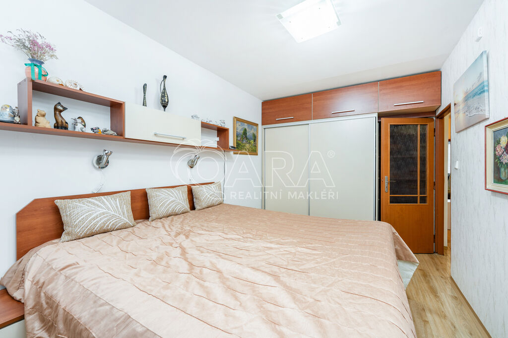 Úložné prostory: V ložnici a na chodbě jsou praktické vestavěné skříně. K dispozici je také prostorná komora přímo v bytě.