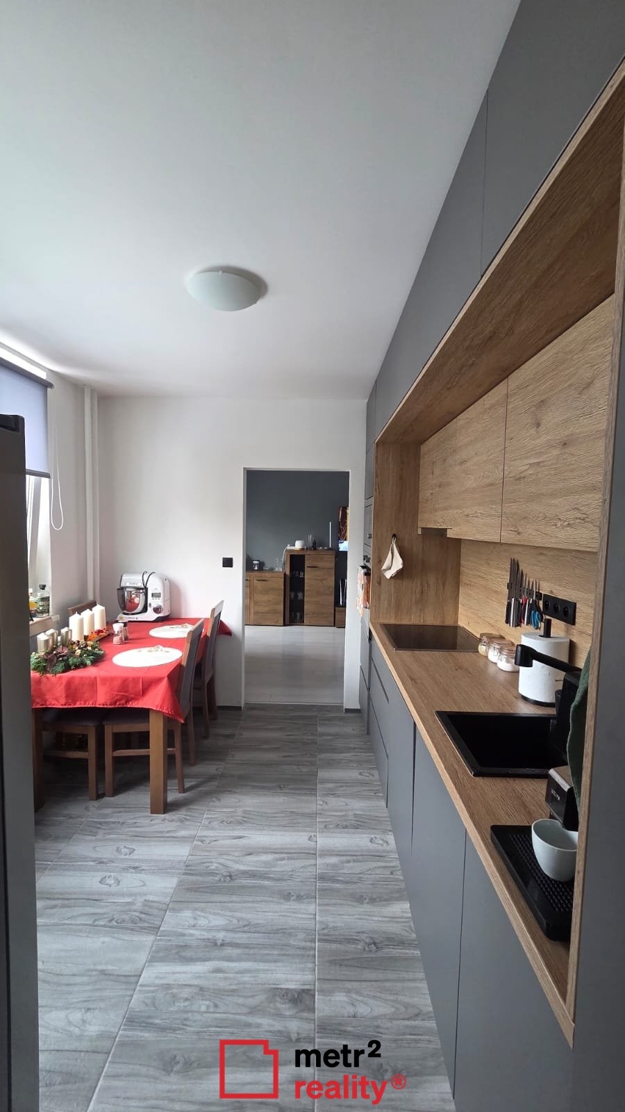 Ve výhradním zastoupení si Vám dovolujeme nabídnout prodej velmi pěkného, kompletně zrekonstruovaného bytu o dispozici 3+k na ulici Generála Svobody v Moravském Berouně. Jednotka je umístěna ve 3. NP osmipodlažního panelového domu umístěného klidné lokalitě na jižní straně města. Celková podlahová plocha bytu je 61 m2 a patří k němu lodžie a sklepní kóje v suterénu domu. Orientace bytu je slunná, jiho-západní. Komplexní rekonstrukce bytu proběhla v roce 2022 a zahrnovala změnu dispozice, vyzdění jádra, nové rozvody elektřiny, ve dvou pokojích a kuchyni nové radiátory, nové jsou laminátové podlahy, dveře včetně zárubní a designová kuchyňská linka na míru. Nedílnou součástí rekonstrukce byly omítky a sádrokartonové podhledy. Dům je po renovaci (zateplená fasáda, střecha, stoupačky, vchody). K přednostem jednotky patří neprůchozí pokoje, a dále umístění domu v blízkosti centra, MŠ, ZUŠ, dětského hřiště nebo např. knihovny. PENB v kategorii B. Bližší informace v RK.