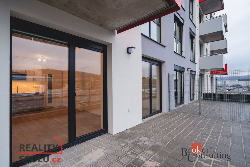 Byt tvoří prostorná chodba s prostorem na vestavnou skříň i mnoho dalšího, samostatný neprůchozí pokoj, koupelna s WC, obývací pokoj s kuchyňským koutem a terasa (17,8m2).
