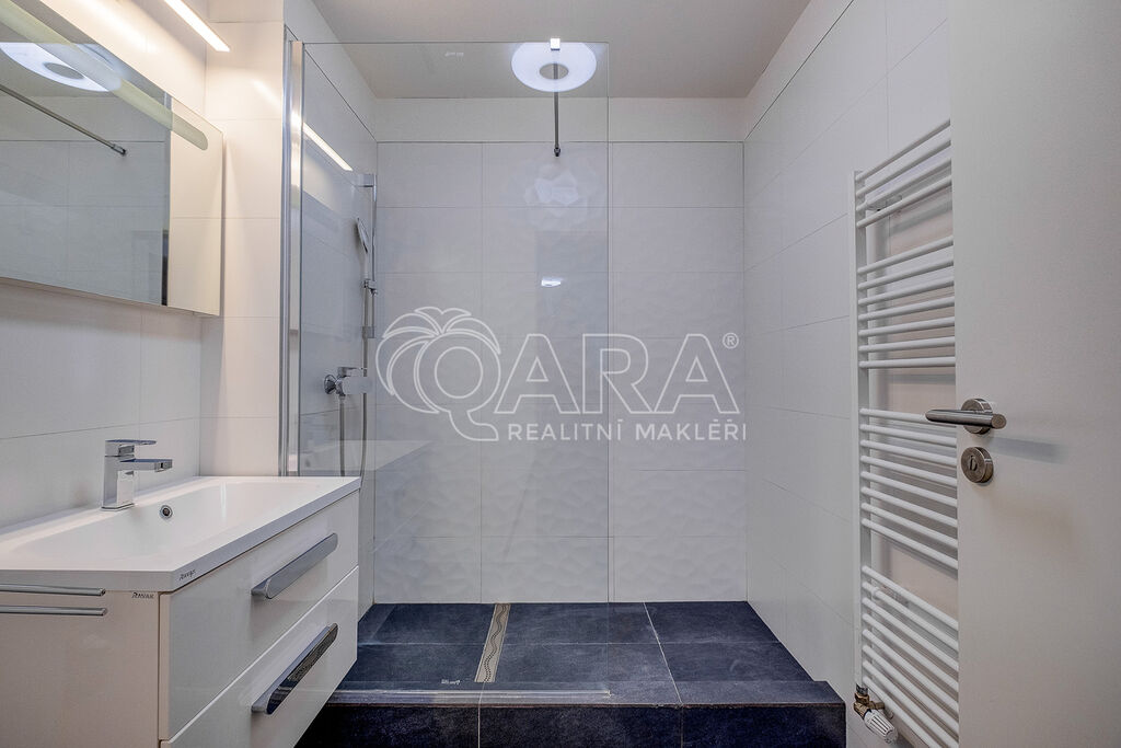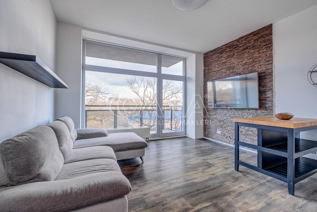 Dispozice: prostorná vstupní hala, obývací pokoj se vstupem na balkon a s vybaveným kuchyňským koutem včetně spotřebičů (el. trouba, el. sklokeramická deska, digestoř, vestavěná lednice), ložnice se samostatným vstupem včetně balkonu, koupelna s prostorným sprchovým koutem, samostatné WC. Dům je napojen na veškeré sítě a vytápění je zajištěno vlastním plynovým kotlem v rámci bytového domu, k dispozici je výtah. Byt je částečně vybaven a k dispozici je od ledna 2026.