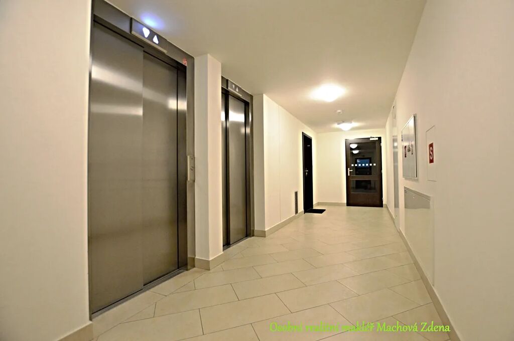 Byt 1+kk o velikosti 33,1 m² se nachází v 5. nadzemním podlaží a je vybaven plně zařízenou kuchyňskou linkou s lednicí, mrazákem, myčkou, mikrovlnou troubou a varnou deskou. Obývací pokoj s kuchyňským koutem má 21 m² a je prosvětlen francouzským oknem s trojskly a elektricky ovládanou venkovní žaluzií. V předsíni o velikosti 7,1 m² jsou vysoké vestavěné skříně, které poskytují dostatek úložného prostoru. Koupelna je vybavena prostorným sprchovým koutem a pračkou, toaleta je samostatná pod vlastním uzavřením.