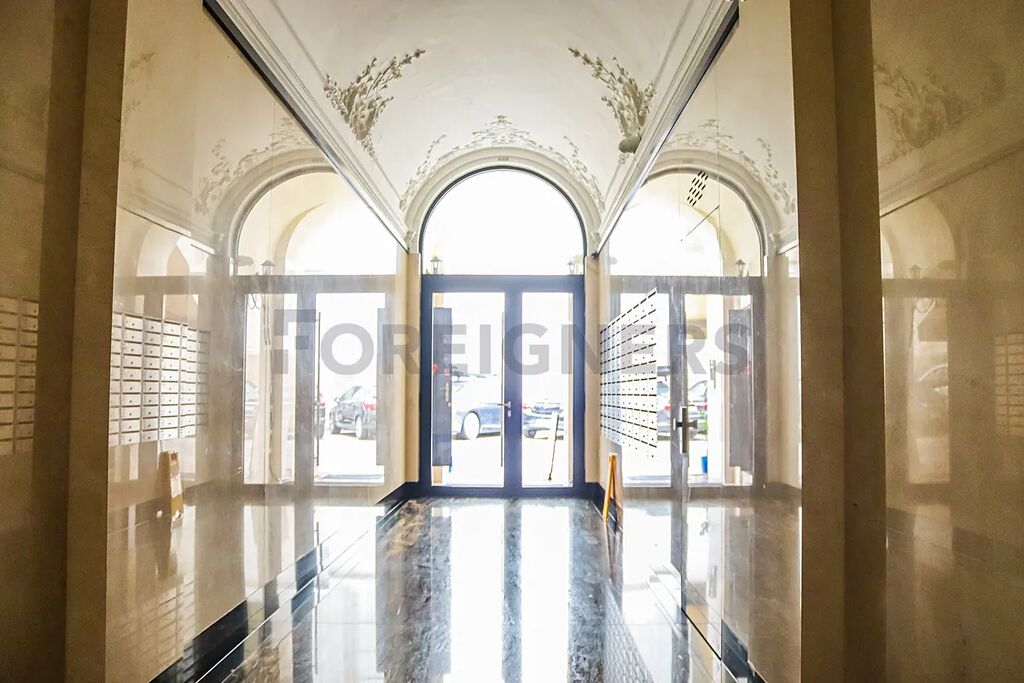 Nedávno provedená renovace domu dala interierům nový nádech a nechybí ani vylepšený bezpečnostní systém a výtah.