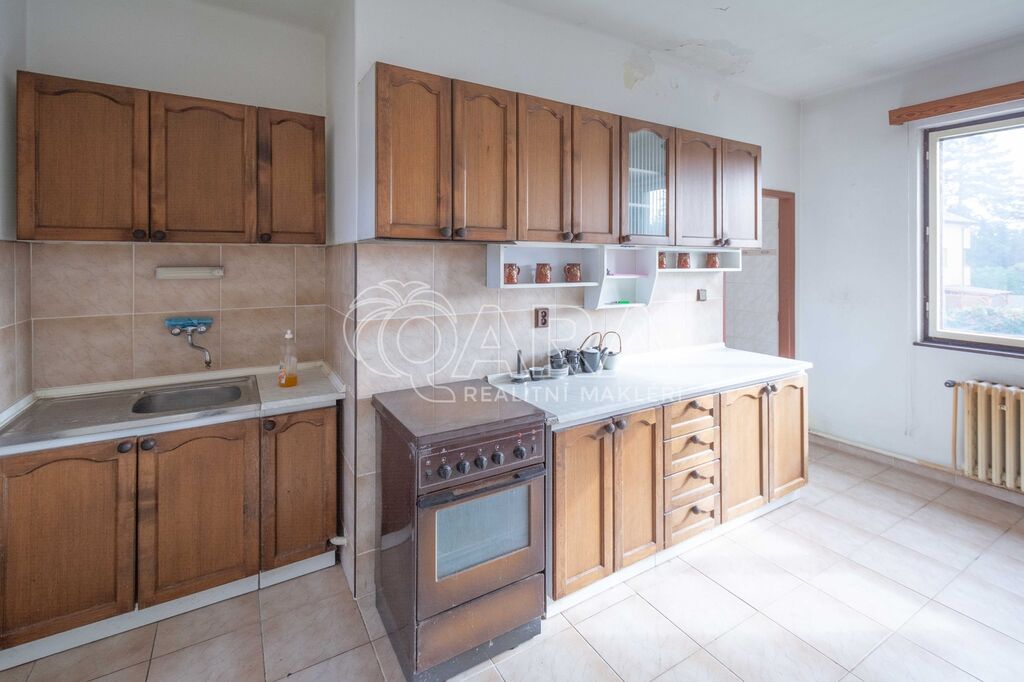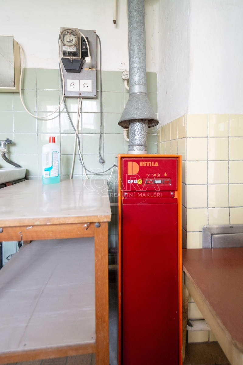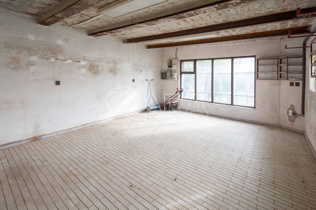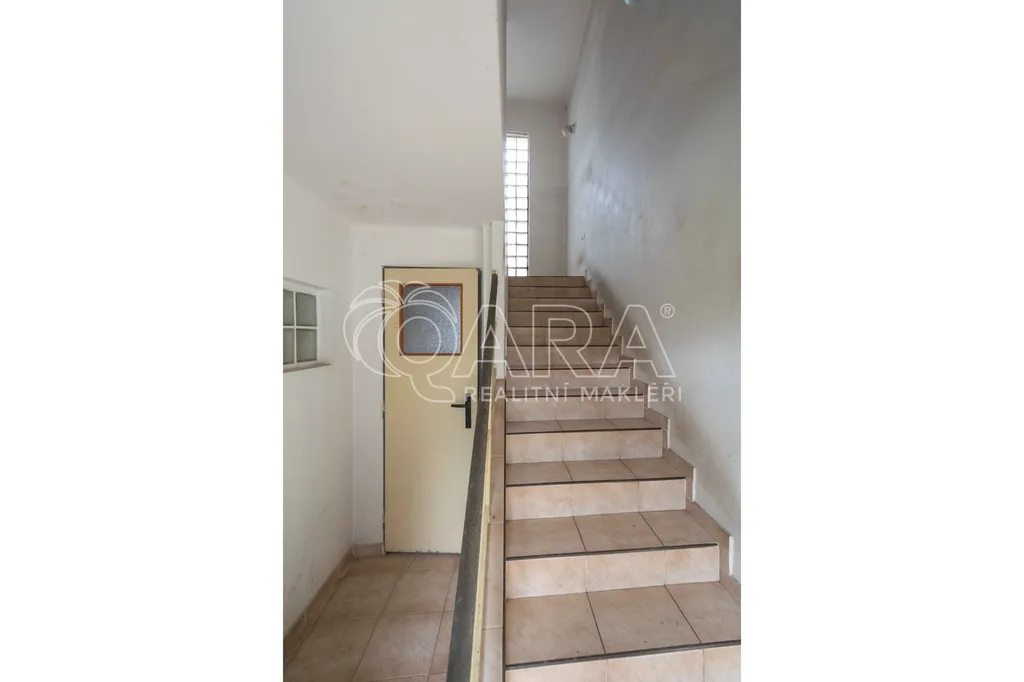 Dispozice přízemí: garáž s dílnou o velikosti 83 m2, sklípek, kuchyně, předsíň a tři pokoje o celkové velikosti 61 m2. Ze zahrady vstup do původní prádelny + další skladové prostory o velikosti 20 m2.