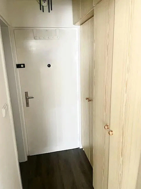 Vstupem do bytu se ocitnete v předsíni o ploše 2,15 m2 s vestavěnou skříní. Hned po pravé straně od vstupu do bytu se nachází prostorná koupelna o ploše 2,7 m2 se sprchový koutem, toaletou, umývadlem a prostorem na pračku. Naproti vstupu do bytu je umístěn obývací pokoj s kuchyňským koutem o ploše 14,5 m2, patrovou postelí, rozkládací postelí, policovou skřínkou, pračkou, lednici, televizi a pracovním koutem. Na podlaze předsíně a obývacího pokoje s kuchyňským koutem je položena vinylová podlaha, na podlaze koupelny s toaletou je keramická dlažba. Orientace bytu je na jihozápad, k bytu přináleží také sklep o ploše 2,13 m2 a k dispozici je rovněž využití balkonu v mezipatře.