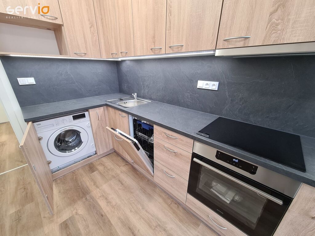 Součástí jednotky je moderně vybavená koupelna (sprcha nebo vana, WC, umyvadlo, galerka se zrcadlem, věšáky, pračka), kompletní KL včetně spotřebičů (myčka, trouba, sporák), vinylová podlaha, jídelní stůl a židle, možnost dovybavení postelí (jednolůžko, dvojlůžko), předsíňový nábytkový program, a další vybavení dle domluvy s majitelem. Fotky jsou ilustrační, z podobného bytu. Ke každému bytu náleží sklep. Objekt zabezpečen kamerovým systémem. Možnost pronájmu krytého PS za poplatek 2.000,-Kč/měs. + DPH.