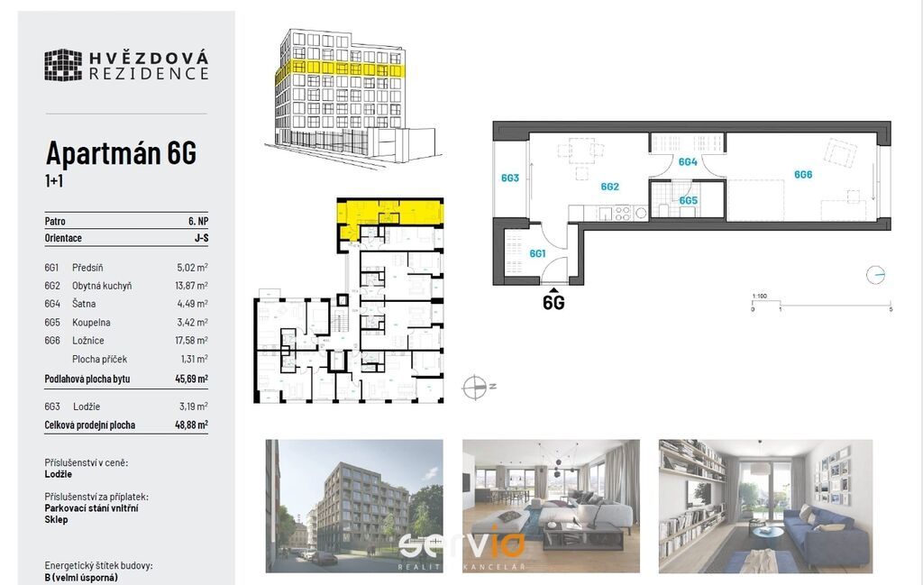 Nabízíme exkluzivně pronájem bytu 1+1 o velikosti 48,88 m2 (včetně 3,19 m2 lodžie) se sklepem a možností i pronájmu krytého PS v objektu Rezidence Hvězdová, polyfunkční dům obklopený městským parkem, odkud je to na brněnské náměstí Svobody procházkou deset minut.