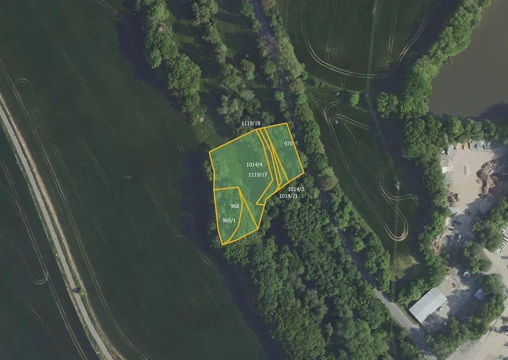 Součástí nabídky jsou pozemky parcelních čísel 968, 969/1, 970, 1014/3, 1014/4, 1014/21, 1119/17 a 1119/18.