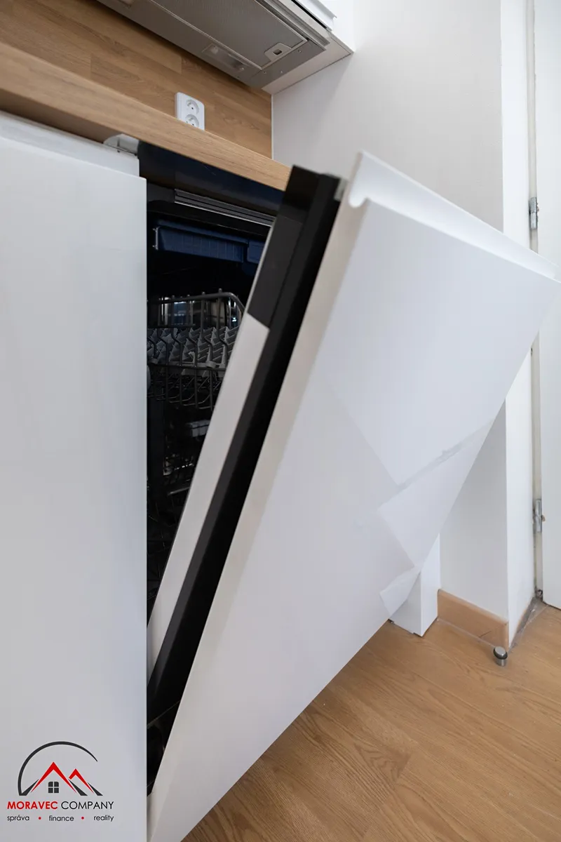 Byt je plně vybaven – nechybí nábytek, spotřebiče, nádobí, ložní prádlo ani ručníky. Stačí si jen přinést osobní věci a můžete bydlet!