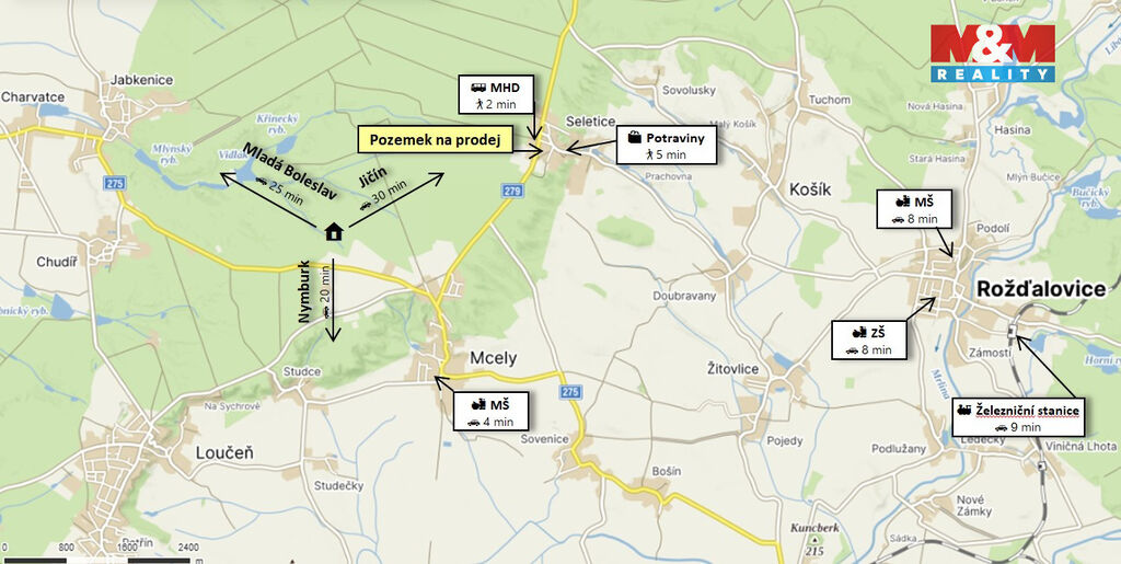 Nabízíme k prodeji atraktivní rovinatý pozemek k bydlení o celkové výměře 835 m² v obci Seletice. Podle nově schvalovaného územního plánu je koeficient zastavění max. 0,4. Na pozemku se nachází studna, veřejný vodovod a elektřina jsou k dispozici na hranici pozemku. Seletice se nachází v krásné přírodě, která láká k procházkám, cyklistice či houbaření. Nedaleko obce se nachází např. zámek Loučeň s krásným parkem a unikátním labyrintem. Dále můžete navštívit stylovou středočeskou krčmu v Dětenicích. Milovníci masa jistě ocení místní farmu, kde si můžete zakoupit maso a další produkty přímo od výrobce. Seletice jsou dobře dostupné z Prahy (cca 50 minut), z Mladé Boleslavi (25 minut). Pozemek je ideální pro klidné rodinné bydlení nebo chalupaření. Veškeré další informace vám rád zodpovím telefonicky nebo osobně na prohlídce.