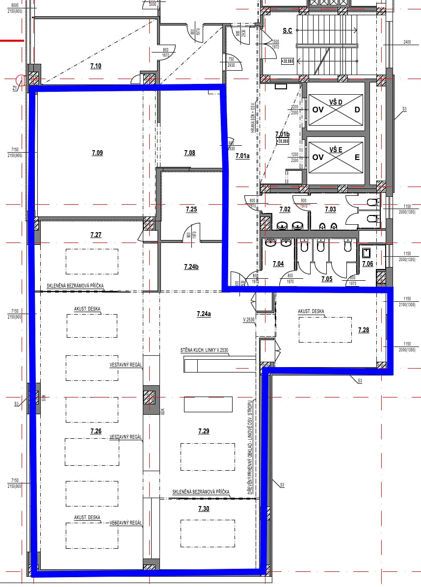 Dovolujeme si Vám nabídnout k pronájmu kancelářské prostory o rozloze 285 m², nacházející se v klidné části obce v Praze. Prostory jsou umístěny v sedmém patře budovy, která je ve velmi dobrém stavu. Moderní kancelářský komplex je vybaven výtahem a je plně bezbariérový, což zajišťuje snadný přístup pro všechny nájemce i jejich klienty.